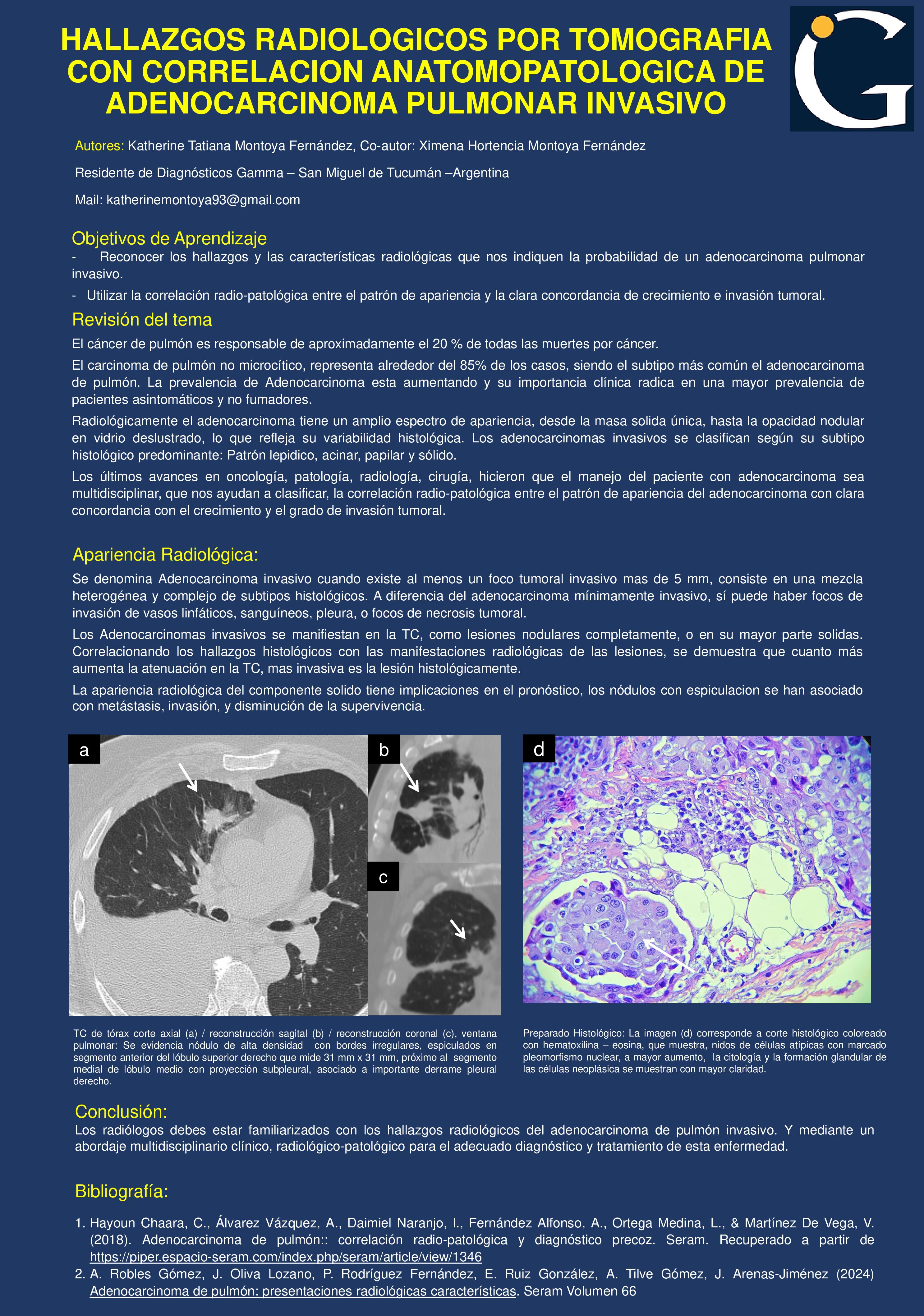 HALLAZGOS RADIOLOGICOS POR TOMOGRAFIA CON CORRELACION ANATOMOPATOLOGICA DE ADENOCARCINOMA PULMONAR INVASIVO